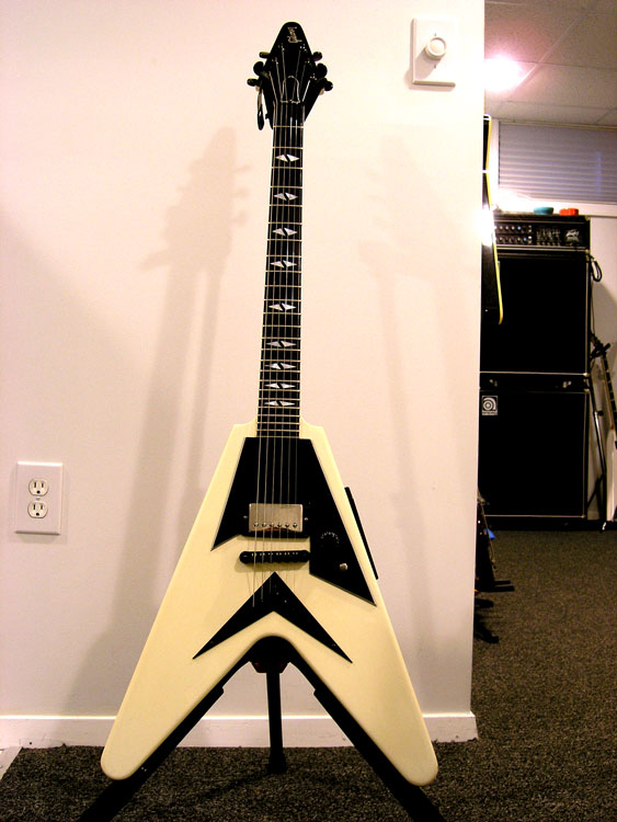 V Headstock, Maple Neck, Dot inlays, Swamp Ask Body, Bolt On Construction,